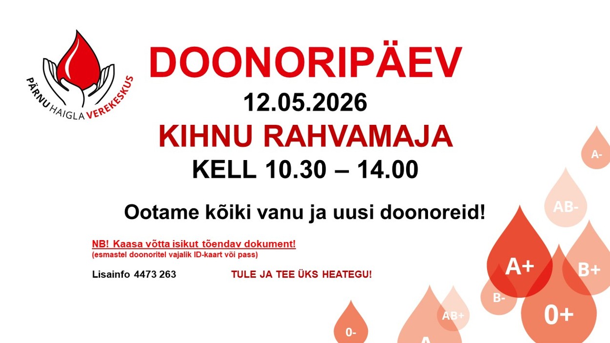XI KIHNU RÄIMERETK toimub laupäeval, 2. mail 2026.a. KIHNU RÄIMERETKEL saab maitsta Kihnu räimeroogi, toimub Kihnu käsitöö ja toidu müük koos õpitubadega. KIHNU RÄIMERETKEST osavõtja saab osta 10. – eurot […]