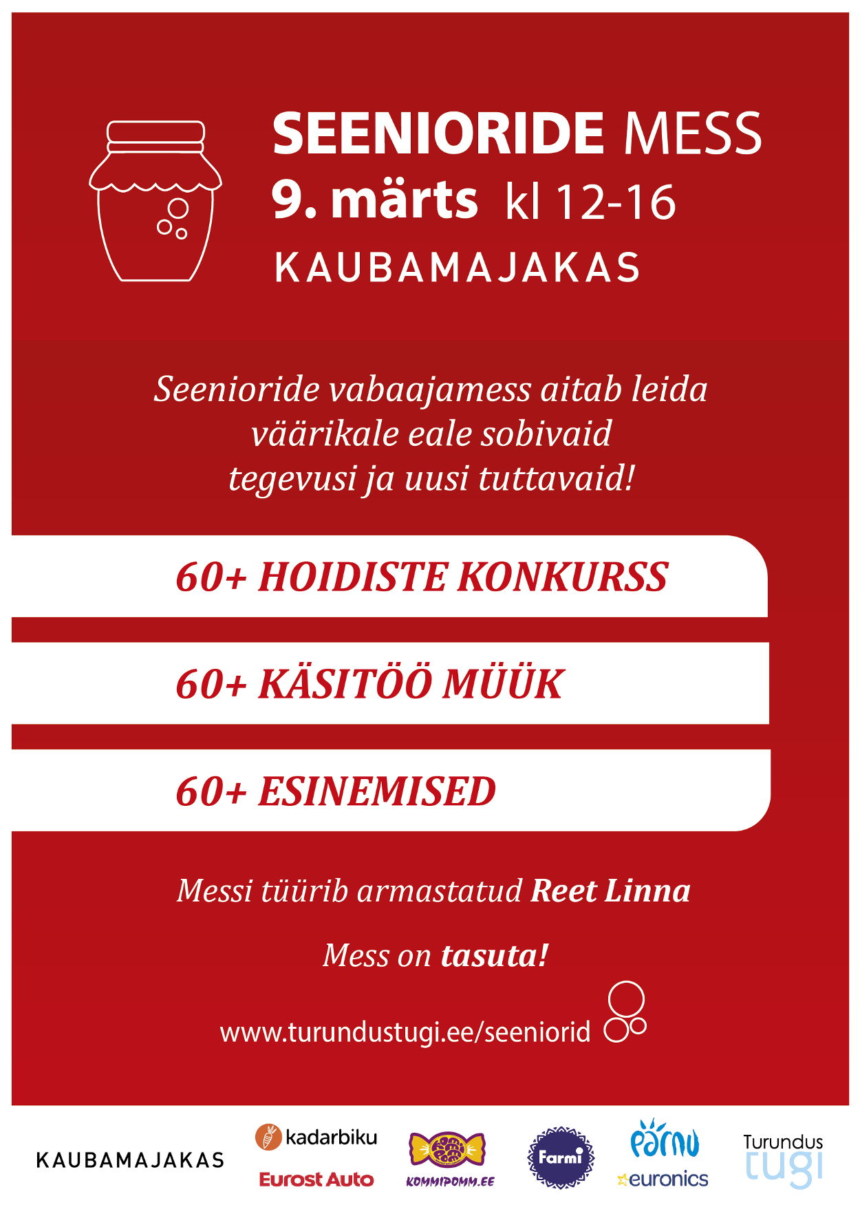 Seenioride mess toimub 9. märtsil kell 12-16 Pärnu Kaubamajakas!