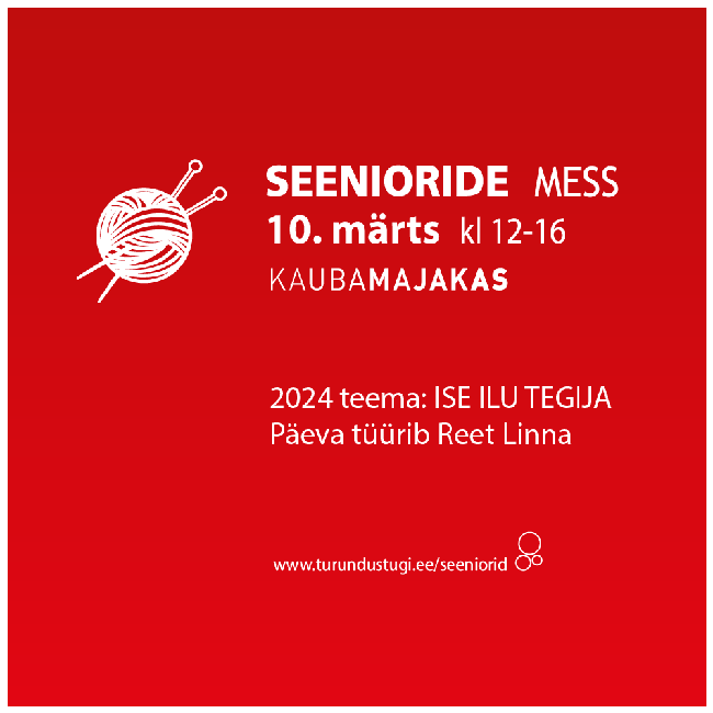 Lisainfo: Piret Hallik-Sass, 5660 5860, piret@turundustugi.ee, https://turundustugi.ee/seeniorid