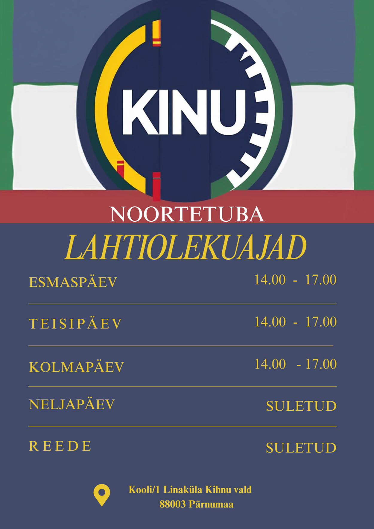Kihnu noortetuba "KINU" on sõbralik ja turvaline koht, kuhu noored saavad tulla pärast koolipäeva aega veetma, sõpradega kohtuma ning ise midagi põnevat ette võtta. Meie noortetoas ei pea lihtsalt niisama istuma – siin toimub pidevalt arendavaid ja lõbusaid tegevusi, mis aitavad noortel avastada oma huve, arendada loovust ning õppida uusi oskusi.