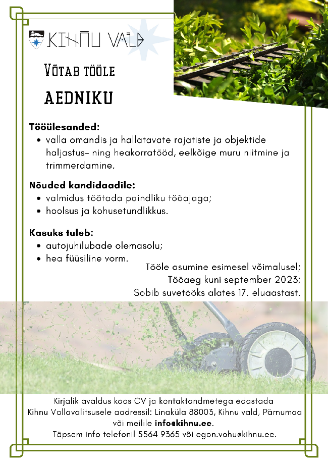 Kihnu Vallavalitsus võtab tööle aedniku