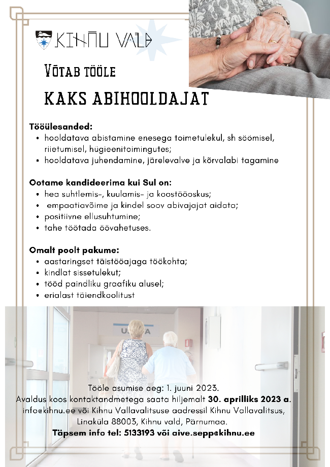 Kihnu Vallavalitsus võtab tööle kaks abihooldajat