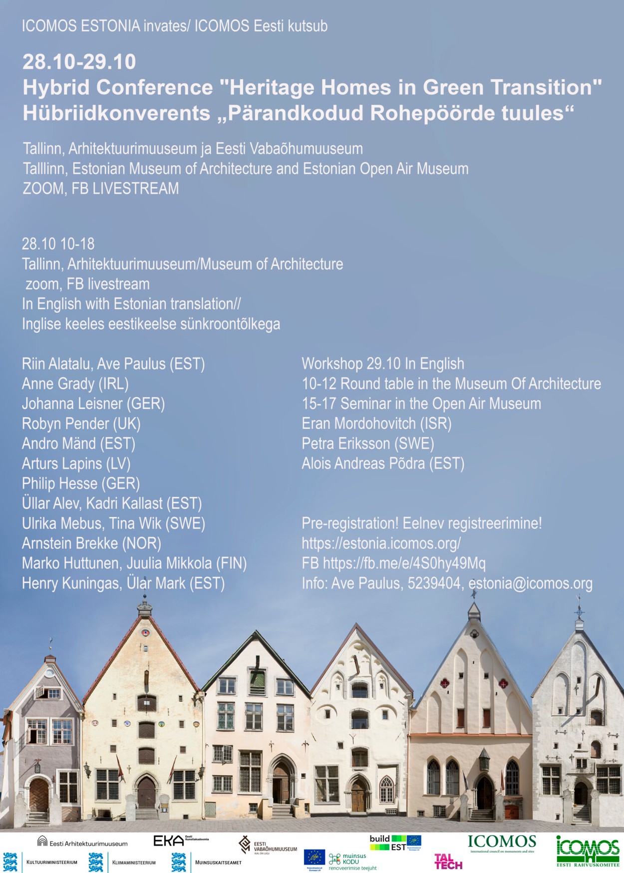 Esmaspäeval ja teisipäeval, 28. ja 29. oktoobril korraldab ICOMOS Eesti rahvusvahelise konverentsi, kuhu kogunevad kultuuriväärtuslike hoonete energiatõhususe ning renoveerimislahenduste üle arutlema eksperdid Põhja- ja Baltimaadest ning mitmelt poolt Euroopast.
