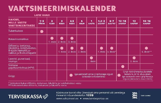 Vaata lisaks: www.vaktsineeri.ee/laste-vaktsineerimine/ajakava