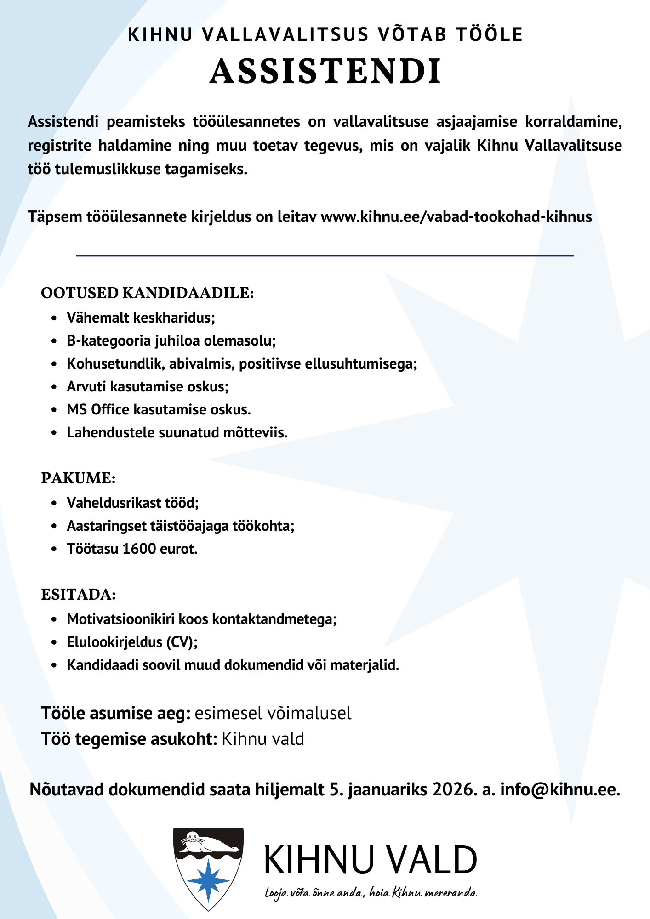 Kihnu vallavalitsus võtab tööle Assistendi